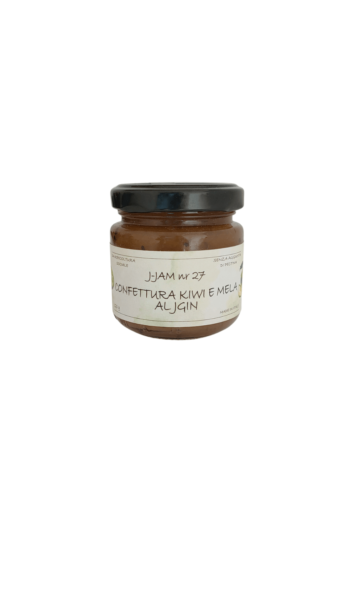 La nr 27 è una CONFETTURA DI KIWI E MELA al GIN (9% vol), senza aggiunta di pectina, solo frutta, nessun conservante.